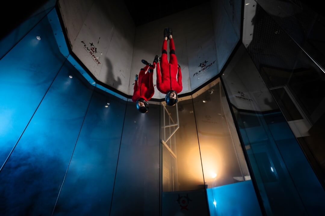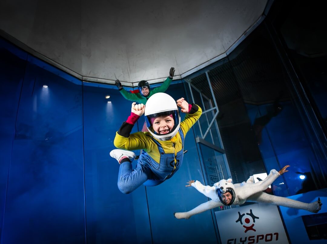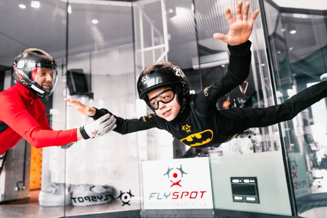 Flyspot має три аеродинамічні труби (у Варшаві, Катовіце та Вроцлаві), найкращі у світі симулятори вільного падіння. Місця, де завдяки використанню найсучасніших технологій люди можуть вільно підніматися в повітря і літати, використовуючи лише своє тіло та імпульс повітря. З технічного боку тунель являє собою вертикальну скляну трубу діаметром 4,5 метра із замкнутим контуром, в якому потужні вентилятори створюють однорідний потік вітру зі швидкістю до 330 км/год. Аеродинамічна труба – це здійснення віковічної мрії людини про політ.